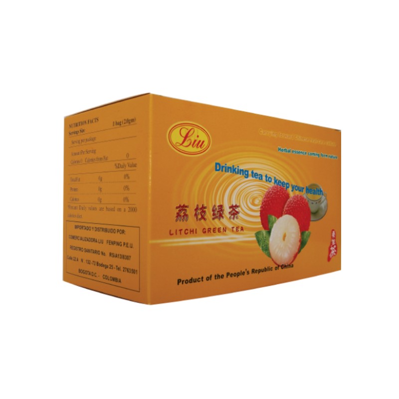 Té verde y lychee Caja de cartón por 20 bolsas de papel filtro de 3 g.(envíos a todo Colombia)